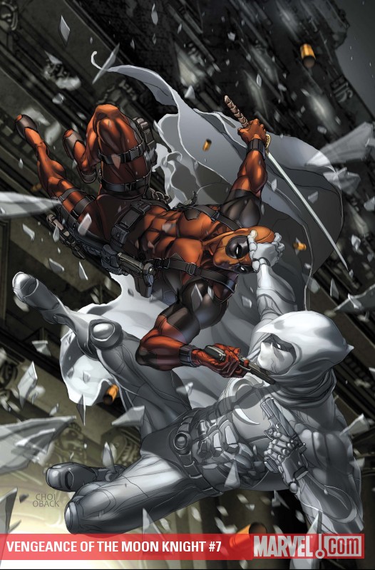 Vengeance of the Moon Knight #7 comes out tomorrow April 7, 2010, and features Deadpool. Official solicitation: