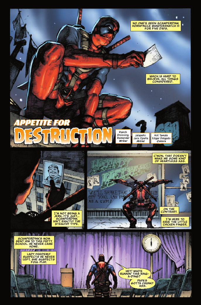 Marvel has provided the a preview of the Deadpool #1000 one-shot, featuring previews of various stories in the book.