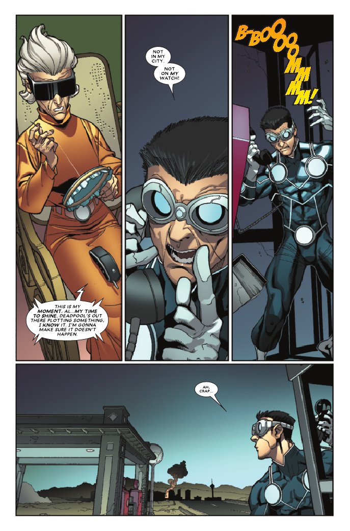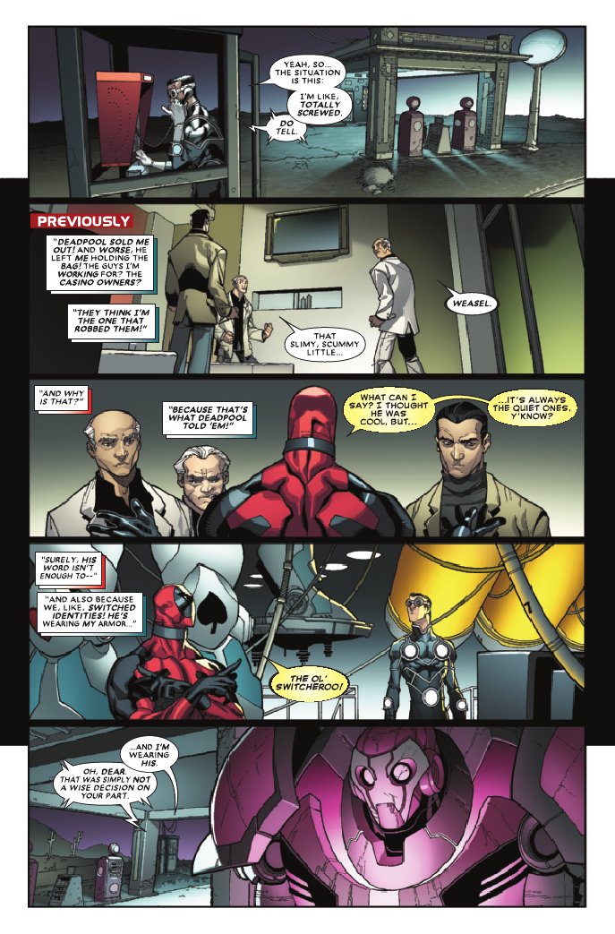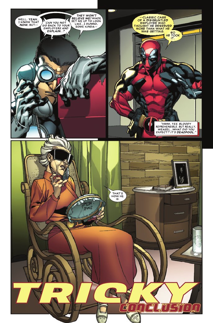 Marvel has provided a seven page preview of Deadpool #25, which comes out next week on 7/21/2010. Official solicitation:“TRICKY,” PART 3 Wait—I thought Deadpool was trying to be a hero, sooo…why is he teaming up with Grizzly to rob casinos? That’s not very heroic. Oh, there’s a twist? He’s gonna do what?! That’s not a twist, that’s…that’s just twisted.