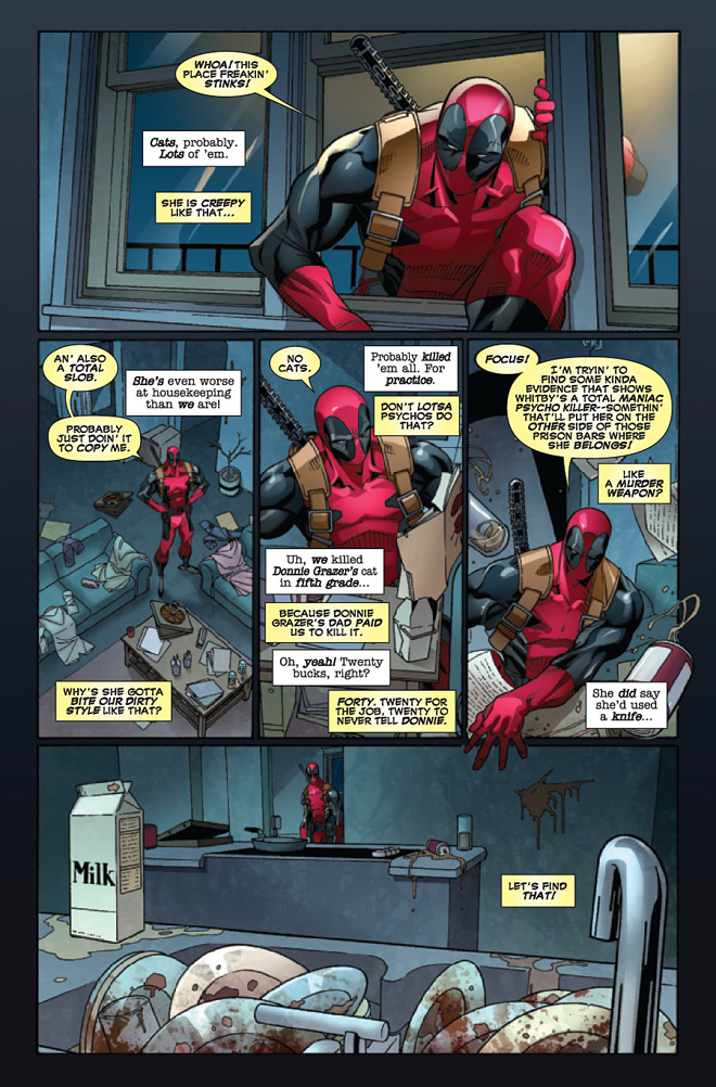 Uh, so…yeah, it turns out Dr. Ella Whitby’s obsession with Deadpool goes way more deeper than anyone could’ve imagined—even Deadpool. And his imagination, it has been said, is almost "Bruckheimerian" in scope. How bad is it? For starters, she’s been collecting his severed body parts for the last few years and has keeping them frozen in her apartment...
