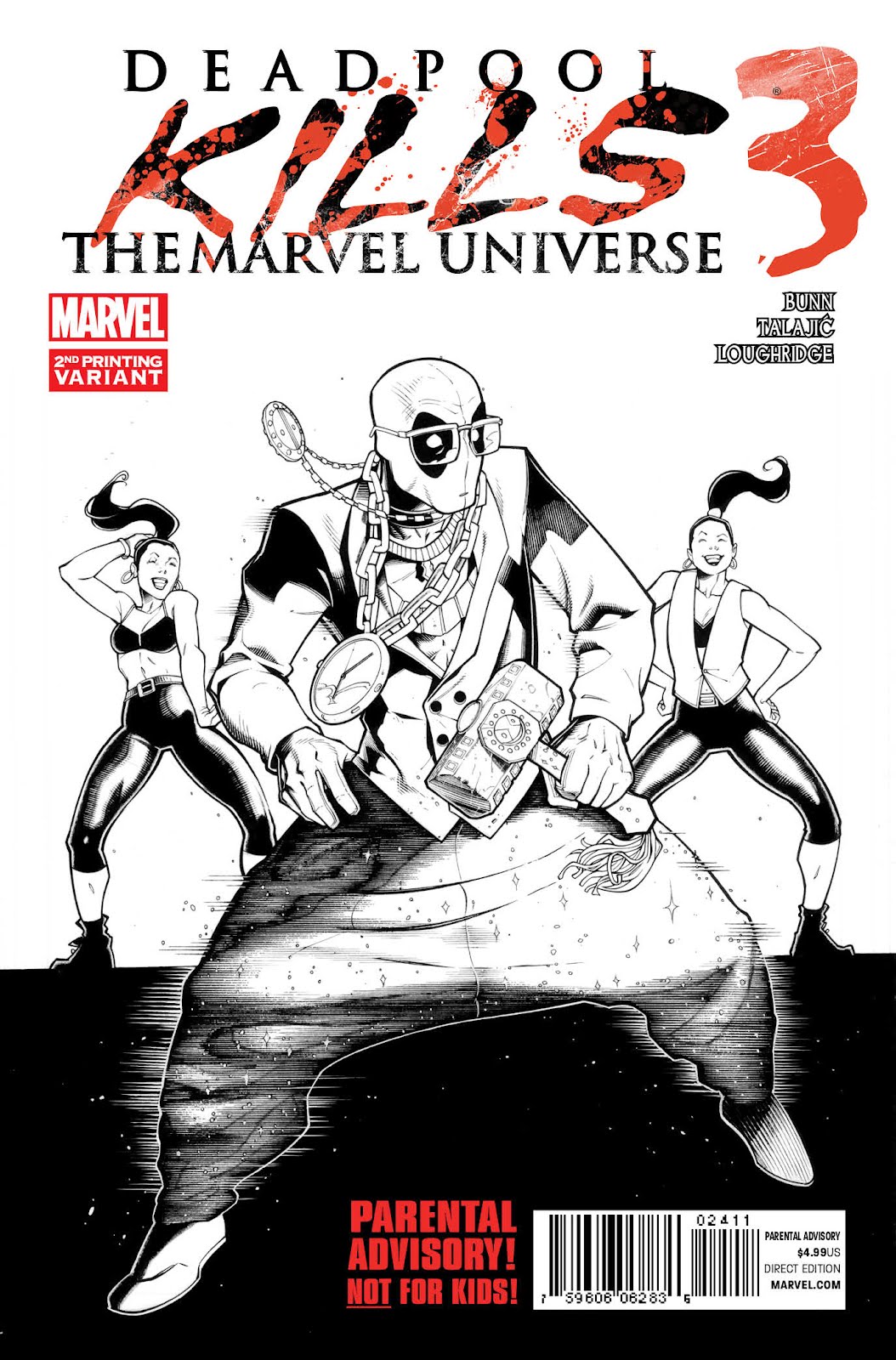 Bleeding Cool News has revealed that all four issues of Deadpool Kills the Marvel Universe are getting a second printing with a second printing variant cover. The covers for second printing are all colorless version of a previously released variant cover, except for issue #3 which was not a variant cover. [SOURCE]