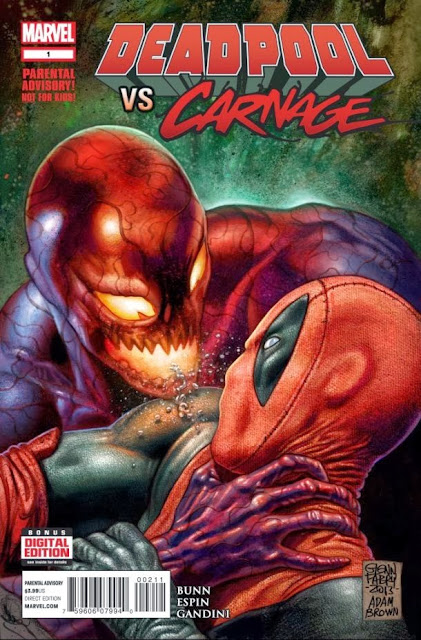 A new miniseries called Deadpool vs. Carnage has been announced. The miniseries is being written by frequent Deadpool writer Cullen Bunn with art by Salva Espin, and comes out in April 2014. IGN has posted an interview with Bunn as well as preview art from issue #1. Thanks to AwesomeSauce57 for the tip. [SOURCE]