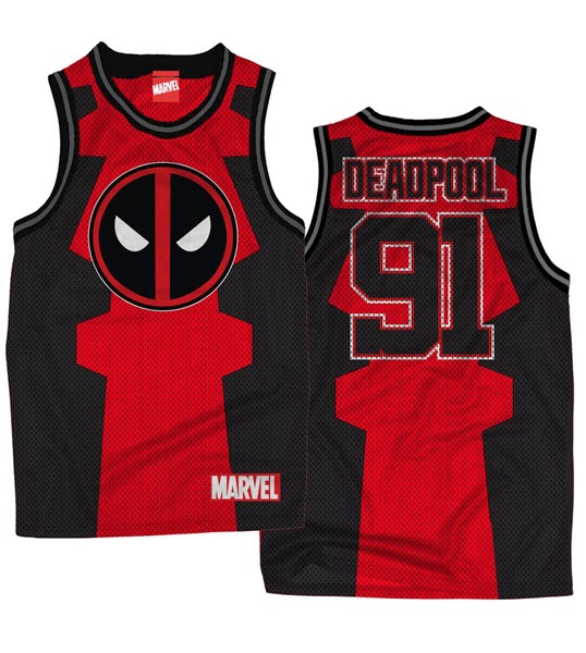 A new Deadpool basketball jersey is now available for pre-order. The jersey costs $28.99 and is expected to be released in June 2014. Thanks to PoolFan for the tip. [LINK]