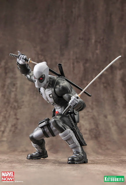 The X-Force variant of the 1/10 scale Deadpool statue from Kotobukiya and shown at SDCC 2014 has been revealed as a Diamond Comic Distributors exclusive. Go to www.comicshoplocator.com to find the nearest comic shop to you to pre-order.