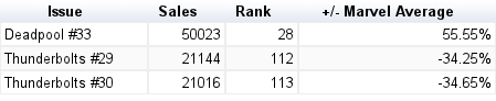 In August the average Marvel comic sold 32159 issues. The table includes the performance against the Marvel average.