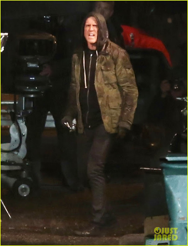 The website Just Jared has posted set photos of the Deadpool movie shooting right now in Vancouver. The photos show Ryan Reynolds as Wade Wilson, not in his Deadpool costume and with scarred skin. The photo set also contains pictures of the costars from the movie. Please note that these photos, and therefor the comment on this post, may contain spoilers. Thanks to bairdduvessa for the tip. [SOURCE]