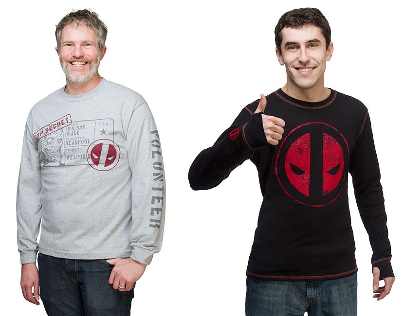 ThinkGeek has listed two new Deadpool long sleeve shirts. The shirts cost $29.99 and $34.99 and are available now. [Top Secret] [Thermal]