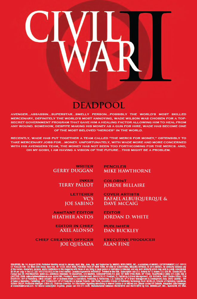 DEADPOOL #14 GERRY DUGGAN (W) • MIKE HAWTHORNE (A) Cover by RAFAEL ALBUQUERQUE SECRET COMIC VARI...