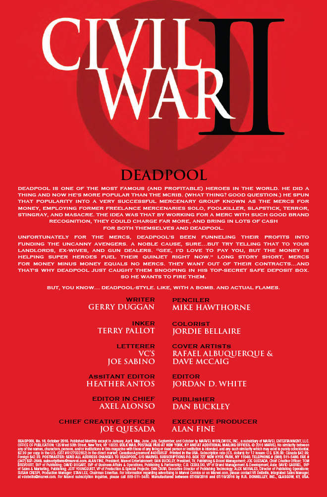 DEADPOOL #15 & 16 GERRY DUGGAN (W) • MIKE HAWTHORNE (A) CoverS by RAFAEL ALBUQUERQUE ISSUE #1...