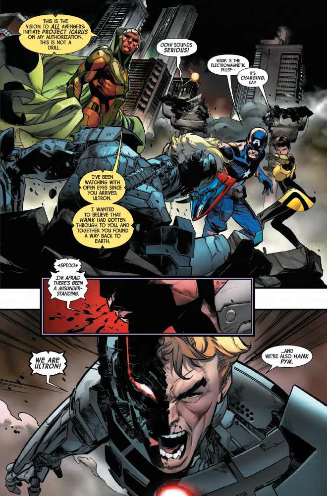 • Not everyone is happy to see that Hank Pym has returned.