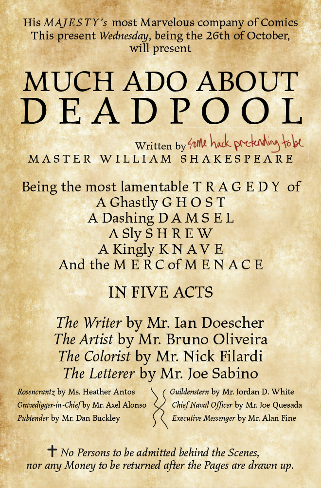 You can’t keep a good Madcap down! First, this massively oversized issue brings you the return of Deadpool’s greatest nemesis. He’s back (in the most horrific way possible) and he’s out for revenge! Then, say hello to SHAKESPOOL, THE MERCENARY OF VENICE as Deadpool goes Shakespeare for an all-new 60-page tale by Ian Doescher (William Shakespeare’s Star Wars series). Those old plays you were supposed to read in English class just got a lot more interesting. Don’t say we never taught you anything!
